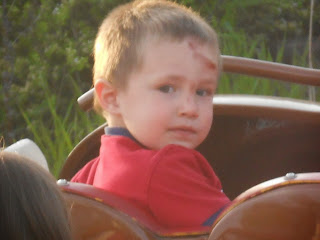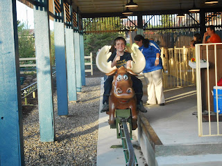 Roller Coasters and Moose on the Loose. Love it so close we can get a few hours in after work. Jonathan has a huge sore on his face from falling on the back steps. Its been awhile since his face looks that bad.