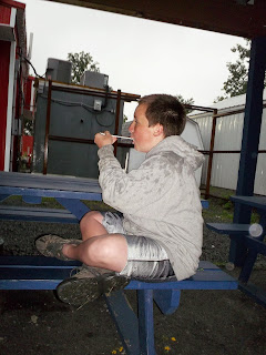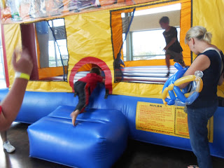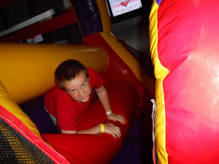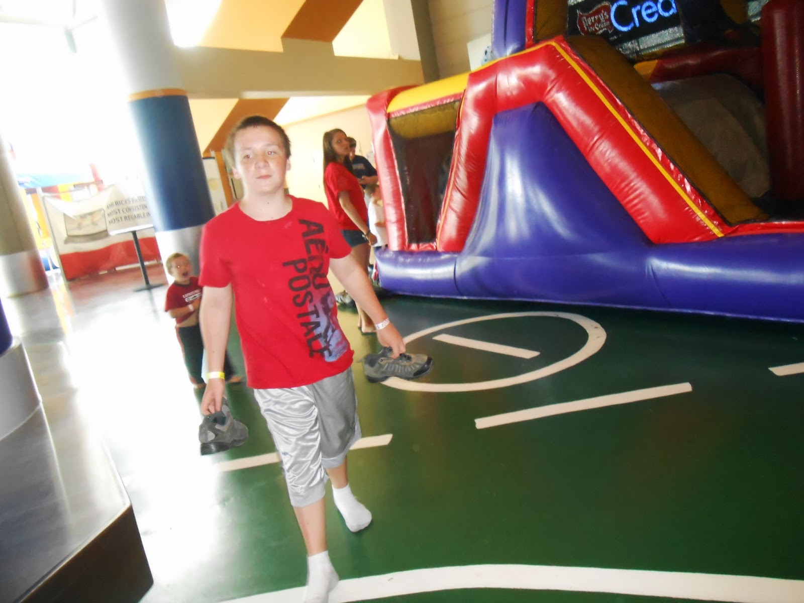 Jonathan did the obstacle course till he was hot and sweaty and still did more