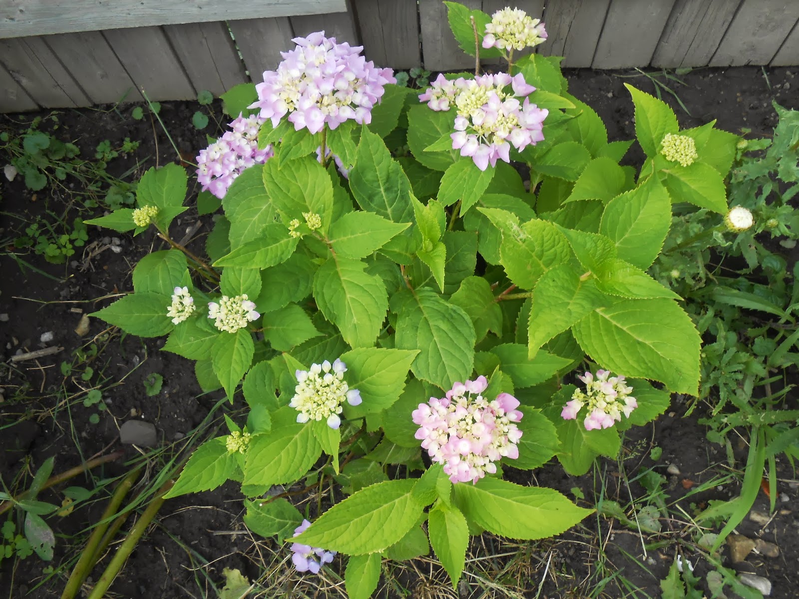 My Hydrangea plant is blooming!!! (I need to weed ) Ididn't bloom last year so I'm very happy!