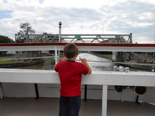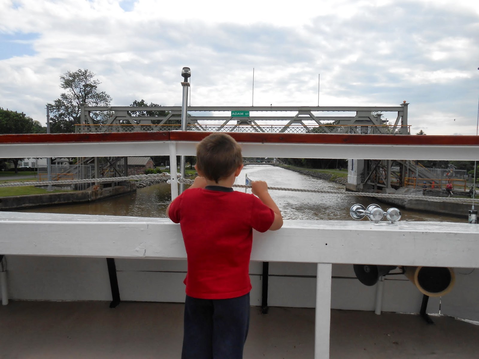 When we went through the first lock Jonathan was a little scared. He knew how much wason the other side of the gate but then he was fine and loved watching everything.