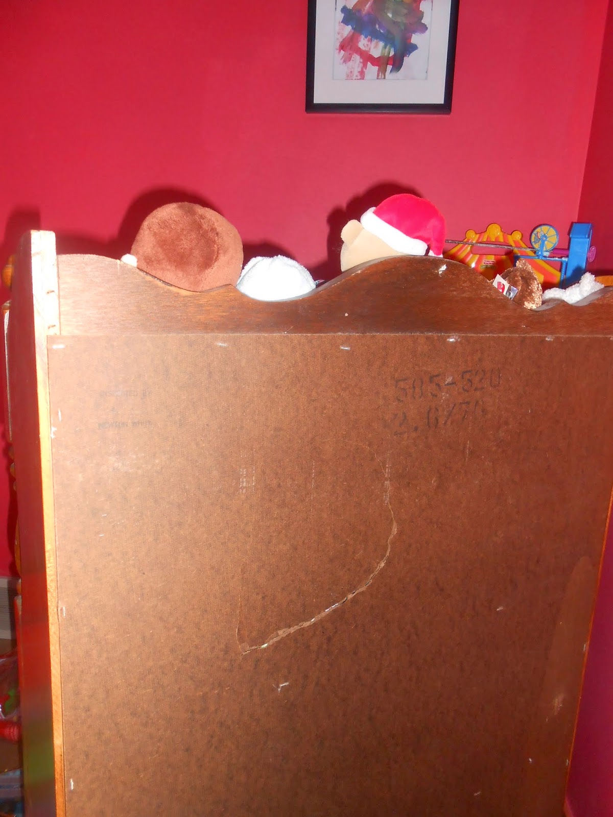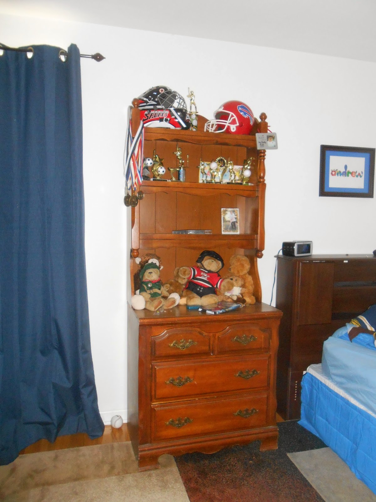 The piggy bank was on the middle shelf that looked like this one............ this is Andrew's room.