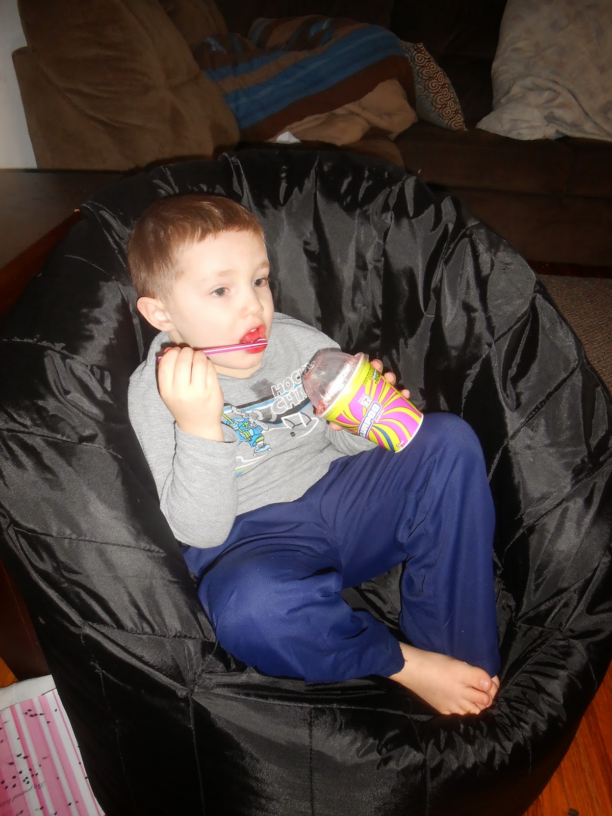 This is suppose to be for Andrew's room so he can relax and watch movies in there....Jonathan loves it. He did talk me into a slushy that day.