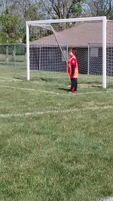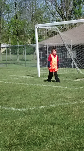 Jon playing goalie. Easiest way I can get pictures of him. He now has scored a goal in every game he's played this season