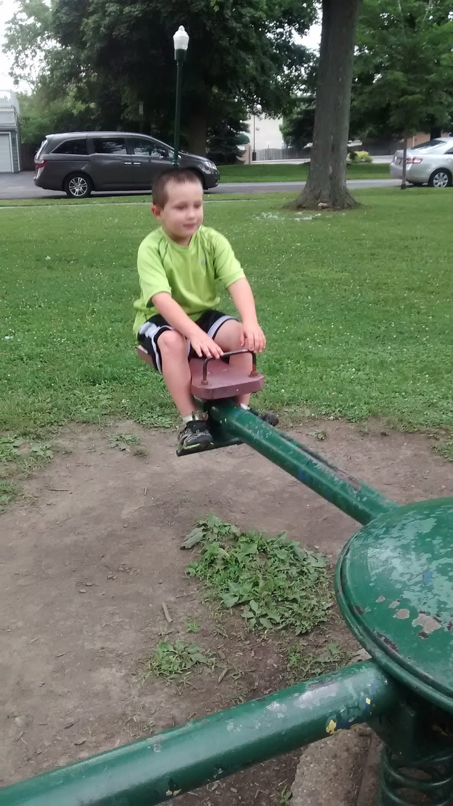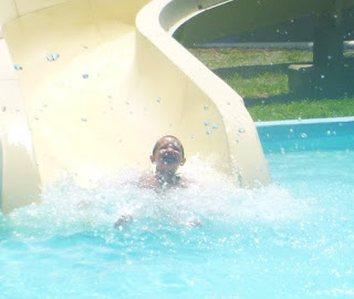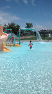 So it did rain while we were at the beach and we came home for awhile. I decided that they still needed something to do and took them over to the park. The water part was open and Jonathan jumped right in.....