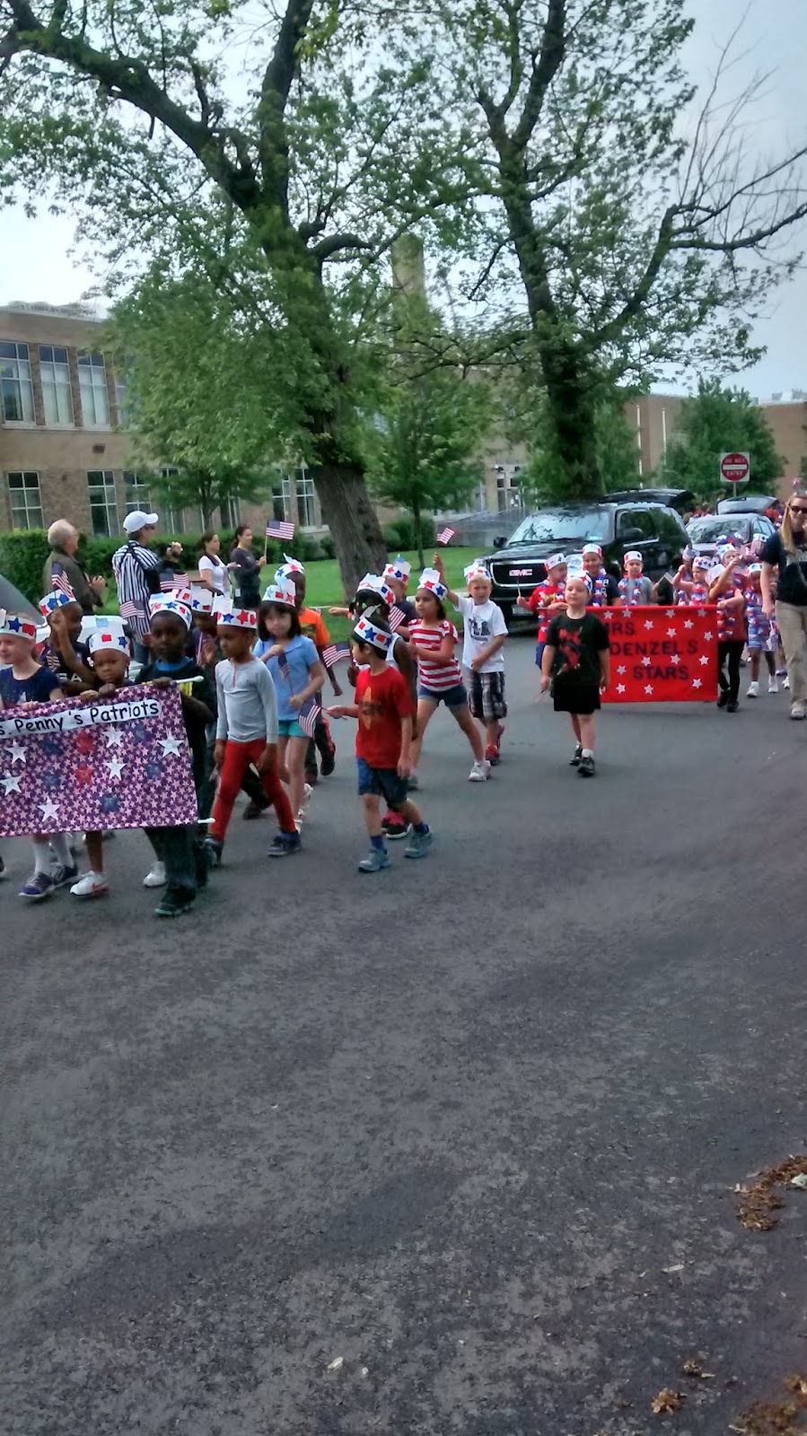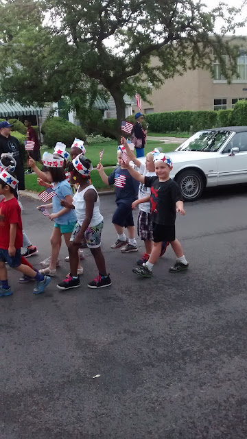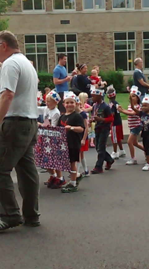 So I knew there was a parade an ceremony going on at the school an thought it was just the Kindergartens going down the sidewalk. Nope....it was definitely a parade!! The entire Elemetary School was in it and they had a police escort