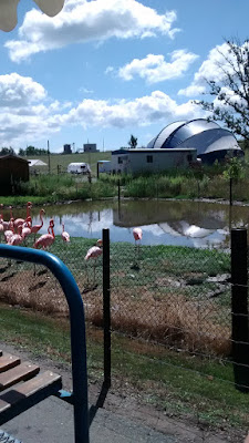 Riding the tram cars to see the animals. You could walk and get a better look but this was more fun!