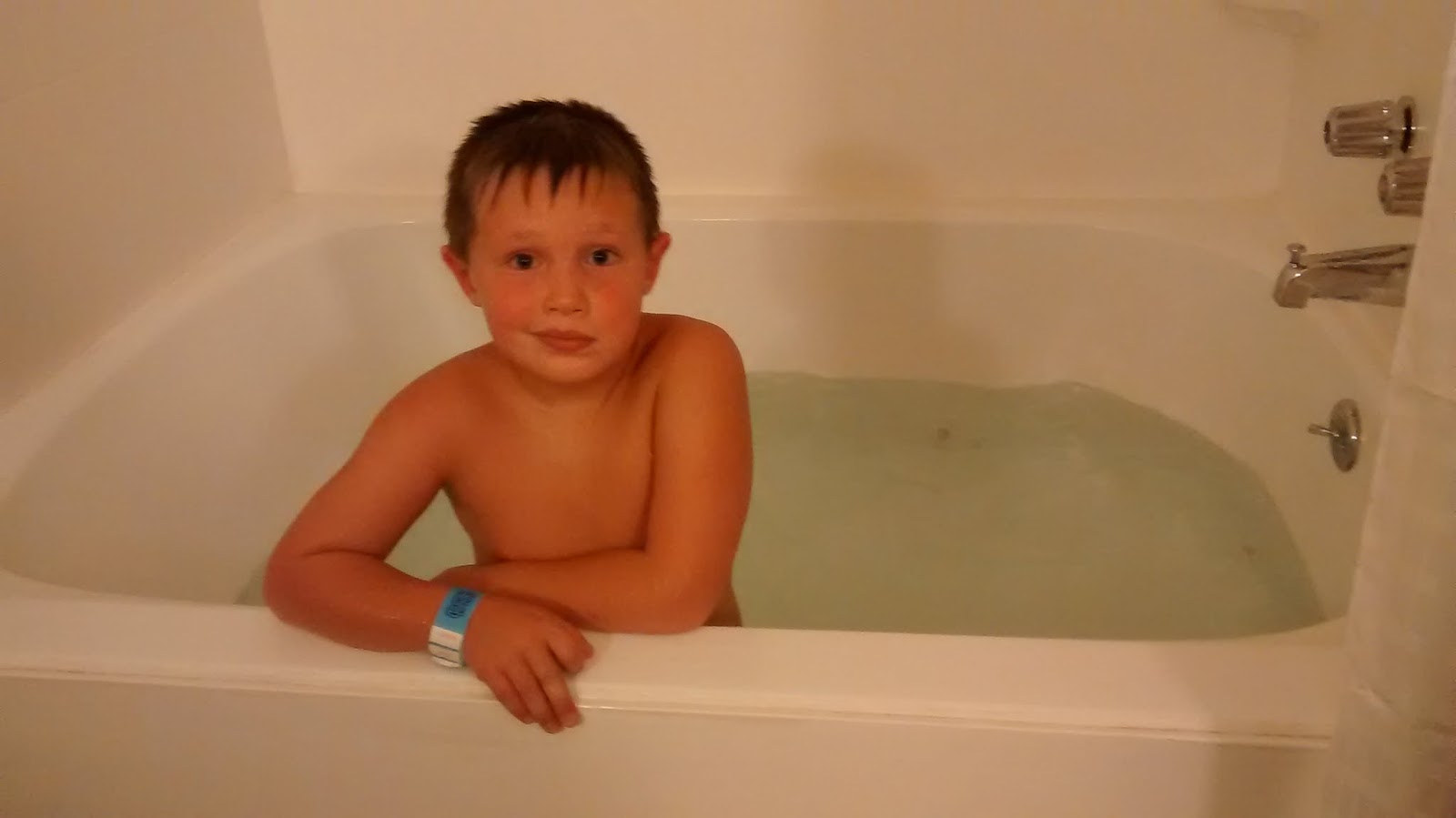 So even after swimming for over 4 hours straight, Jonathan had to test out the Jacuzzi tub in the room. It was too big and fun looking not too.