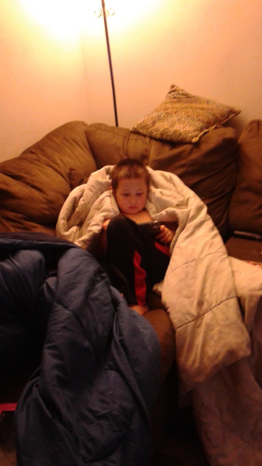 This little thing came home from school not feeling well. He had a fever last night and of course wants mommy snuggles.....SO hoping I don't get it.