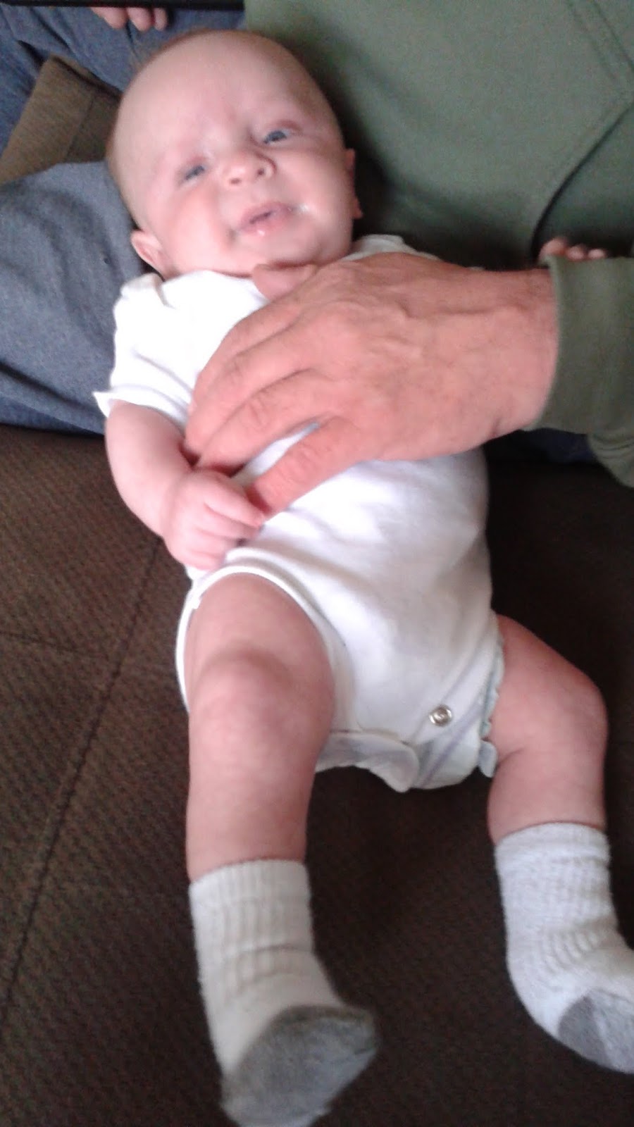 At 4 am after he ate he wouldn't settle down and go back to sleep. He's been getting up early and I really wanted to sleep mainly because I had a hard time sleeping. Crying, nothing worked, not being wrapped, not the pacifier, unwrapping him, more food, nothing........he would stop crying and start whining and moaning and finally settle down only to repeat the cycle till I got up as the others had school. Something is wrong with you...... Checked and he did have a low grade fever 100.0 He just turned 3 months and is little for his age.... Called the doctor and explained how irritable he was, they got him an apt first thing. Checked ears, throat, and for the flu. Nothing...... came home he was moaning and groaning again and gave him some tylenol. He slept good.