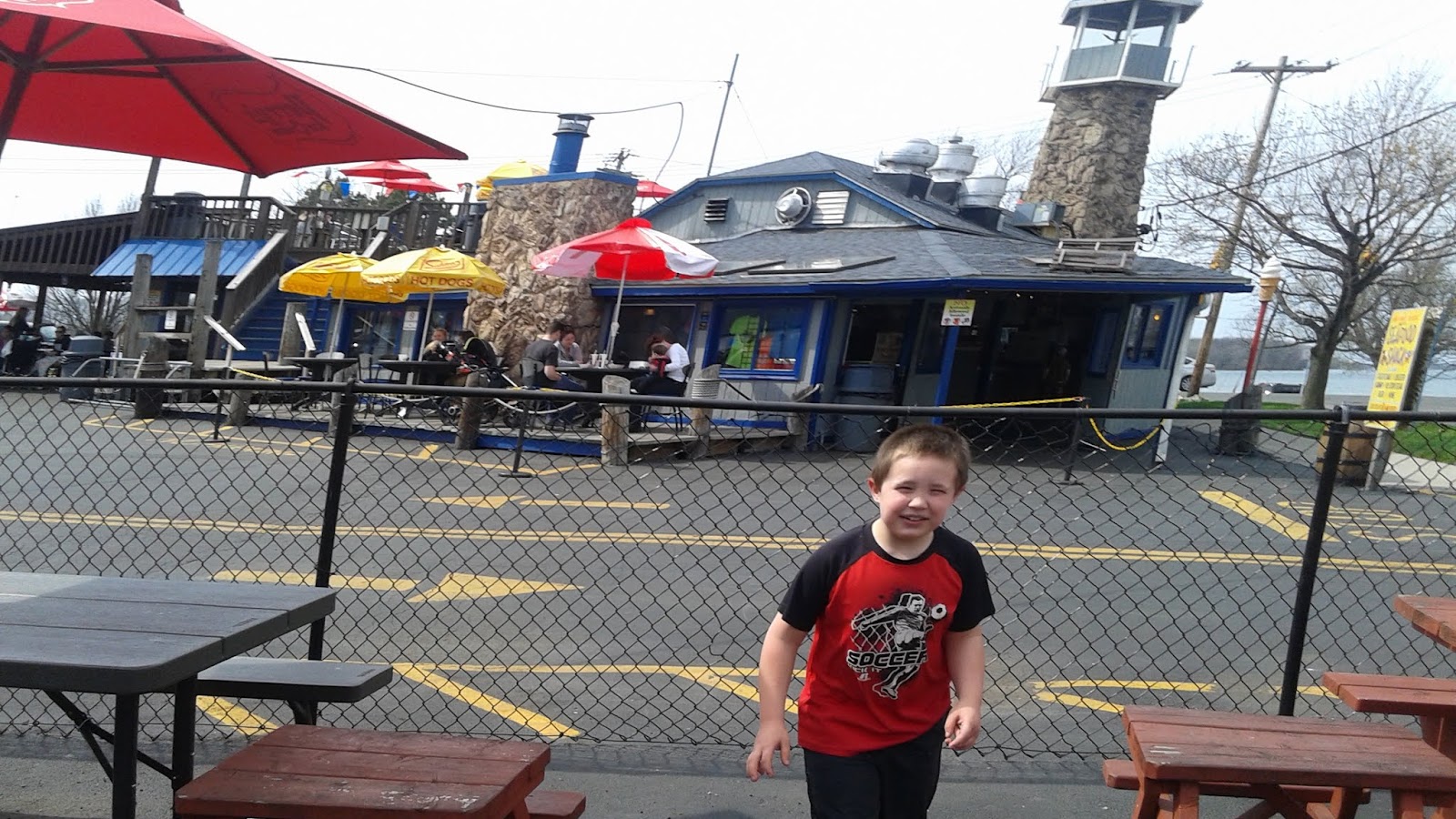 Jonathan went to get napkins and ketchup and when he returned...his hot dog got stolen by the seaguls. Was he ever mad. They were bold as the rest of us were at the table too and the bird just swooped down and grabbed it without it bothering that we were there.