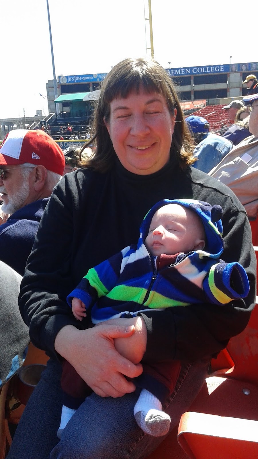 Alex's first Baseball game... sunny 52 degrees. Great day for Baseball.