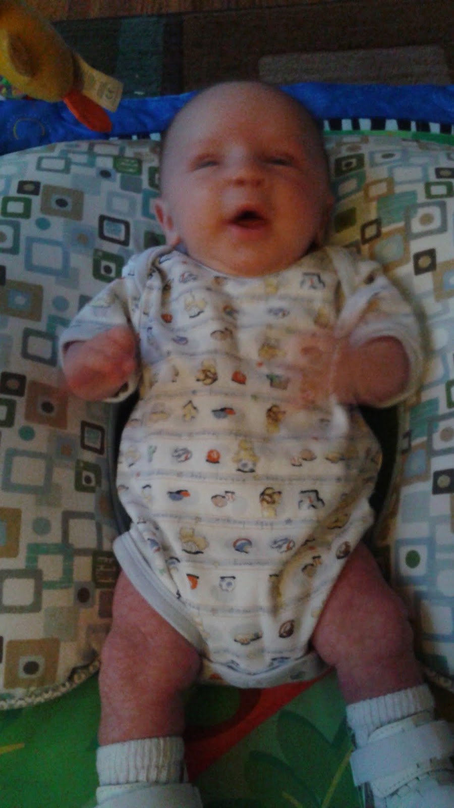 Because of the brace this is what we end up wearing.( this and the snuggie) oh well there are alot of cute oneies I guess