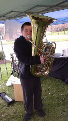 One of the activities there was to try various instruments and I think Jonathan tried most of them. The drums, Tuba, violin, viola, flute and sax. I thought for sure he would tell me his favorite was the sax as he was good at it......but I bet you can guess what his favorite was? The Drums....