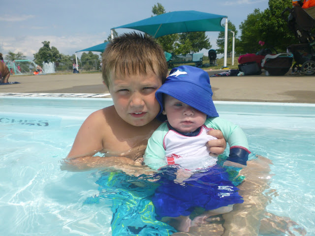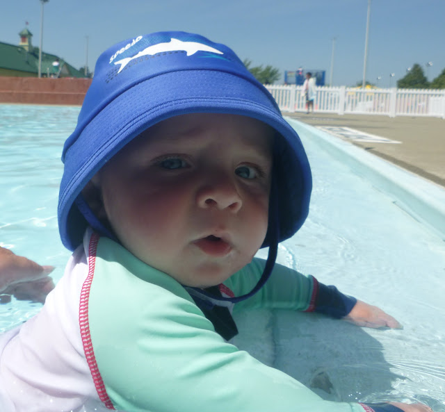 I love the water. I love that he kicks his feet like he's really swimming. only problem , he wants to put his face in and then he gets mad. Maybe an Olympic swimmer when he gets older......