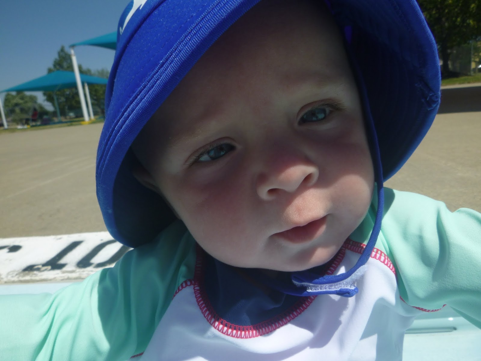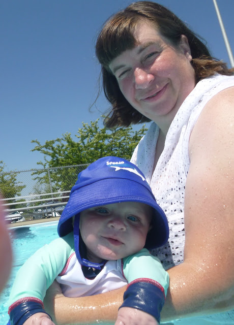 its funny,when I hold him like this, he thinks he's a great swimmer and kicks his legs wildly. I just have to watch as he tends to want to try to put his face in the water and he doesn't like that.